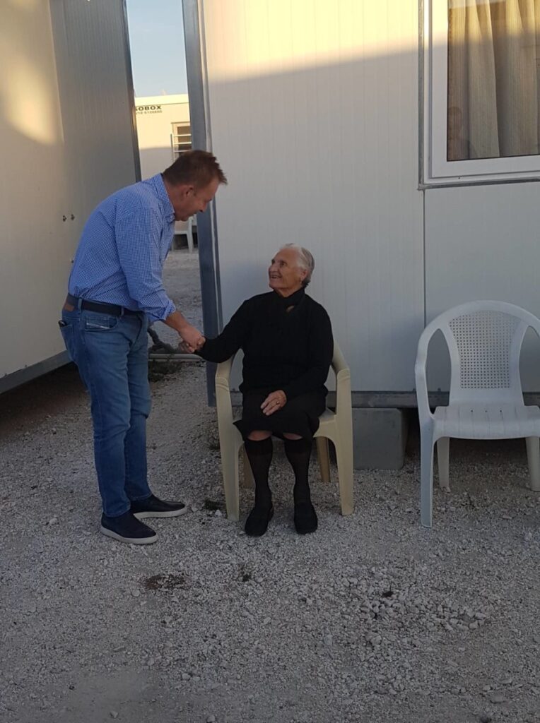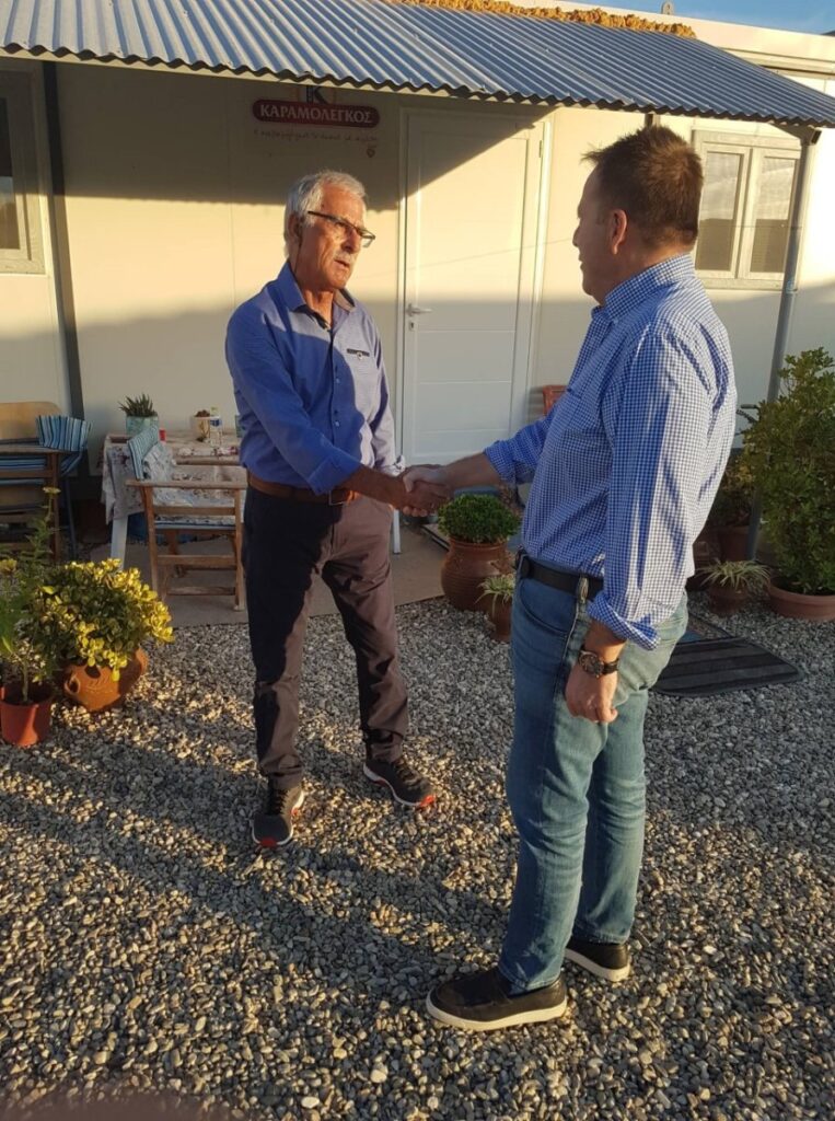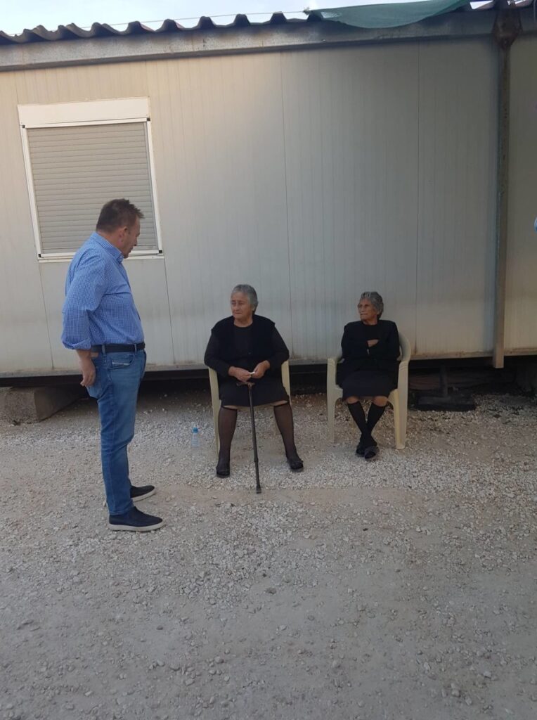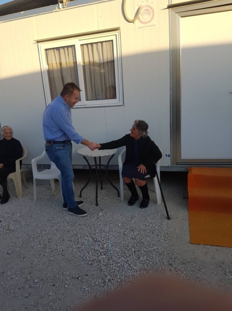 Αρχικά ο κ. Κόκκαλης επισκέφθηκε κατοίκους οι οποίοι – αν και έχει περάσει ενάμιση χρόνος από τον καταστροφικό σεισμό – διαμένουν ακόμη σε κοντέινερ.